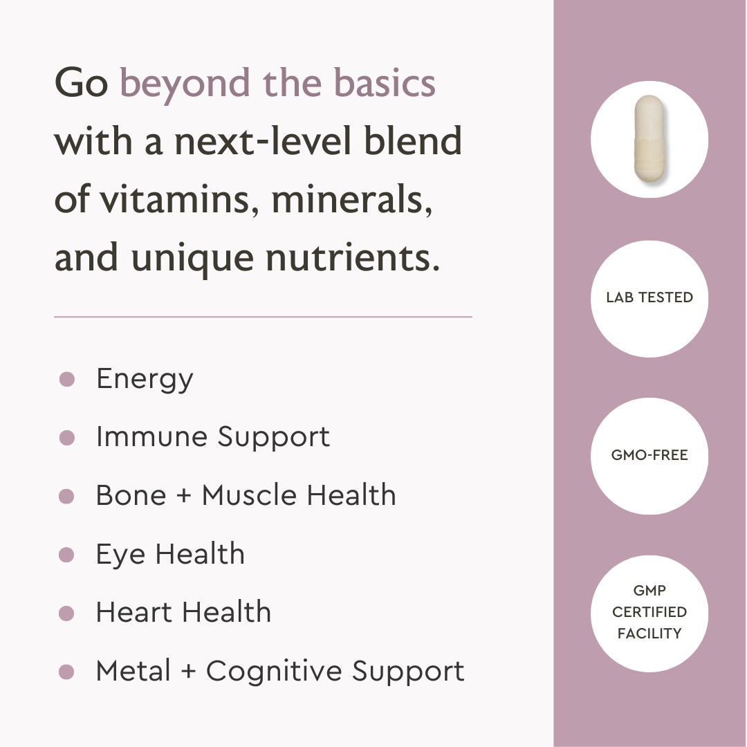 Immune Support: With powerful antioxidants like Vitamins C, D, and E, along with Zinc and Selenium, this multivitamin bolsters your immune system to help you stay healthy and resilient.