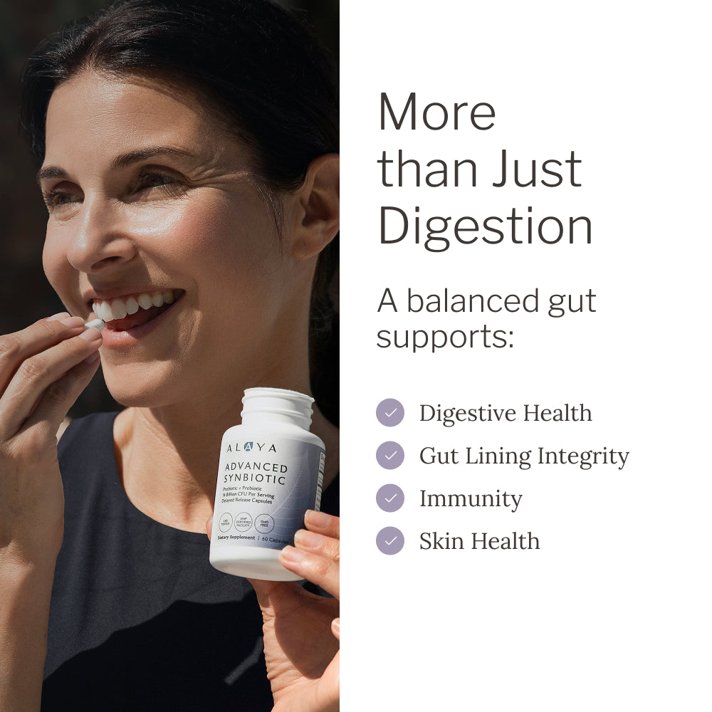 Our Advanced Synbiotic has been expertly crafted with a thoughtful blend of probiotics and prebiotics, which work together to produce beneficial postbiotics. Designed with guidance from leaders in nutritional science, this intelligent solution is tailored to help you support your gut health and immune system as part of your overall wellness routine. *